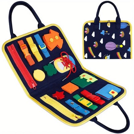 Great sensory toy for toddlers which includes many different activities. This busy board features a vibrant array of sensory-rich activities that will captivate and challenge your toddler's growing mind. Each carefully selected element is designed to enhance fine motor skills, hand-eye coordination, problem-solving abilities, and cognitive development in a safe and enjoyable way.