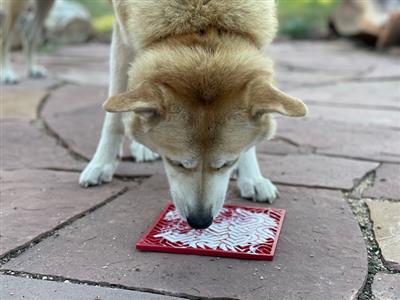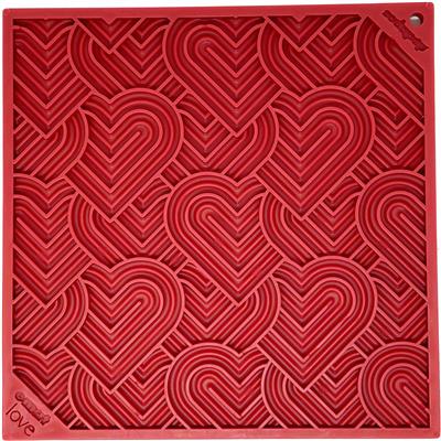 Experience the hottest new dog enrichment toy with the Heart Design "Love" eMat. Promote relaxation, entertain your pet, and provide various benefits such as fresh breath, healthy teeth and gums, and improved digestion. Avoid overfeeding and stimulate your dog's natural instincts with this compact and engaging licking mat. Enjoy easy cleaning with dishwasher-safe convenience. Treat your furry friend with love and enrichment using the Heart Design "Love" eMat!