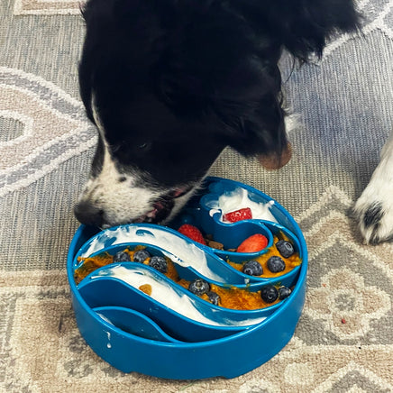 This eBowl is perfect for serving wet and dry foods together without making a mess. You can combine foods together or separate them in the individual chambers of the design. The depth of the eBowl is ideal for serving raw meals (consult veterinarian). Slower eating has the following benefits: calming and soothing for your dog, may help prevent bloat, improve digestion, better gut health, small meals last longer. In addition, use of this eBowl may help keep your dog entertained, reduce separation anxiety, reduce boredom and unwanted behaviors associated with boredom.