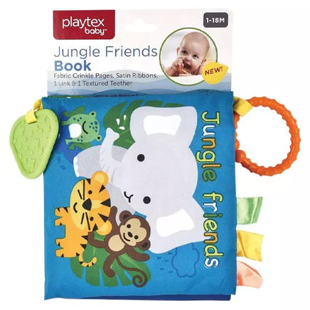 - For those teething moments, the Jungle Friends Crinkle Book features a textured teether toy. Made of safe and soothing materials, the teether provides relief to tender gums and eases the discomfort of teething. Wipe clean for easy maintenance, this teether adds both comfort and fun to your baby's playtime.