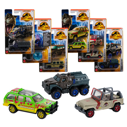 - Diverse Collection: Unleash your child's imagination with this set of 6 dynamic Matchbox cars, each inspired by the iconic vehicles and moments from the Jurassic World series.